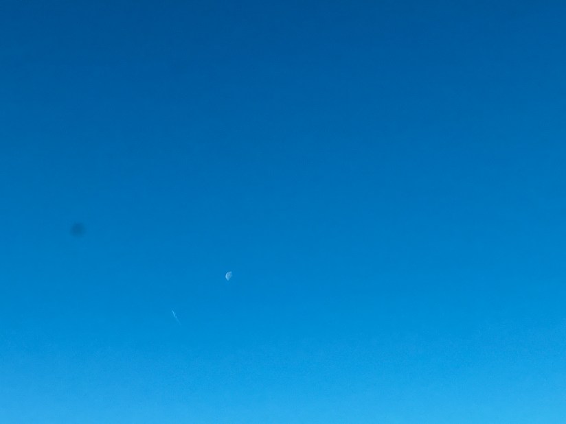 This moon sits silently observing the bustle and hustle of the day’s activity with one face to heaven and the other toward dark.